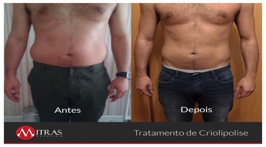 Tecnologia de Ponta: Criolipólise sucção, placas, contraste (congelamento + aquecimento), criomodelagem (atua em todo perímetro abdominal (abdômen + costas)